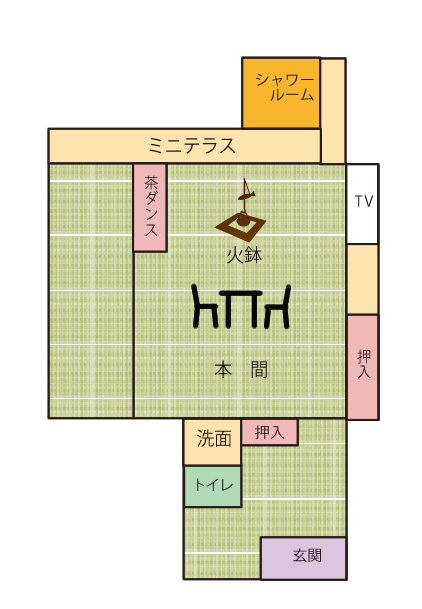 10畳+囲炉裏+ツインベッドルームのお部屋です
