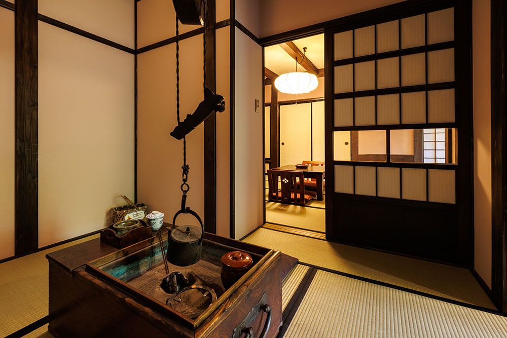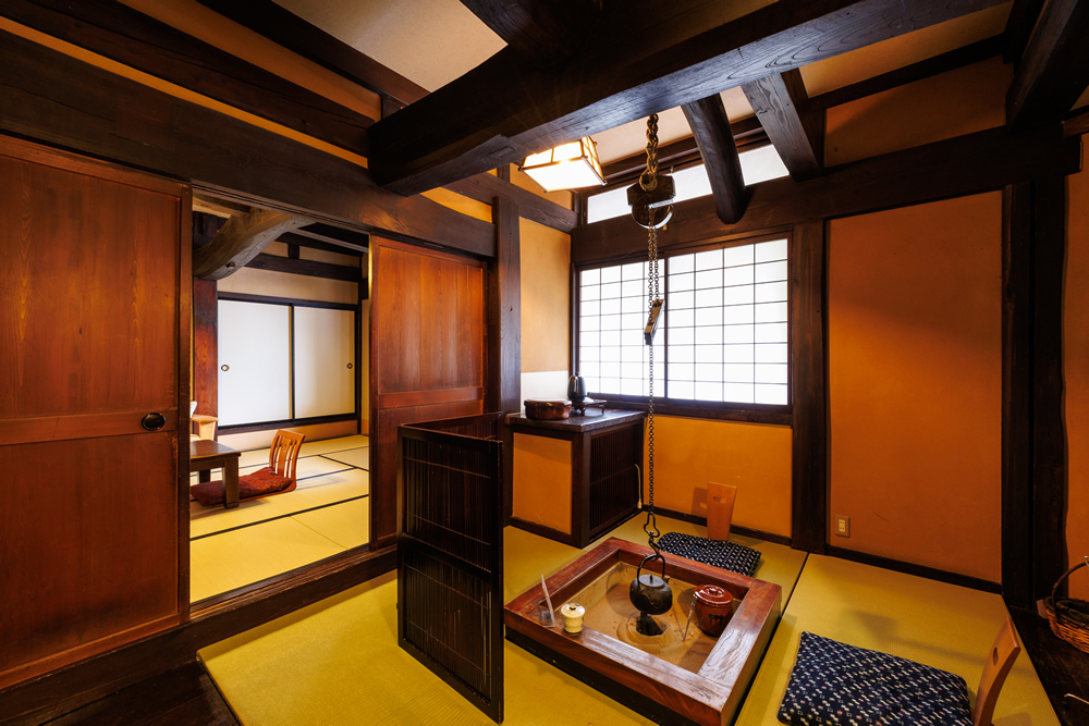 昭和の頃に古民家に惚れ込み、囲炉裏と共に火の優しさを感じる空間を再現。